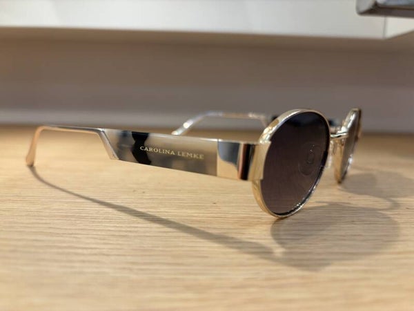 monture ronde métal doré branches écaille claire verres gris dégradés catégorie 3