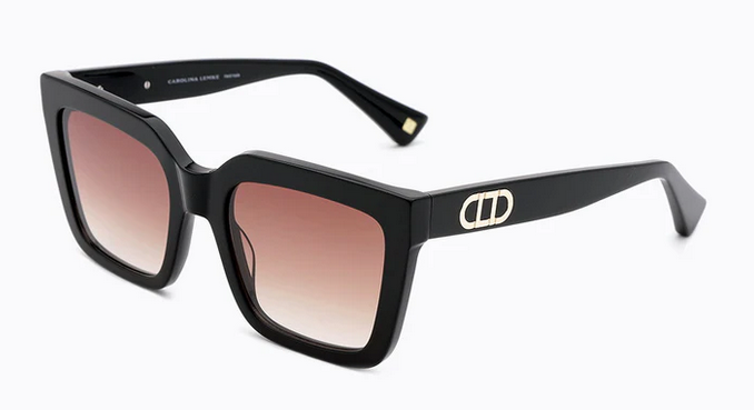 monture acétate noire, logo doré sur la branche. verres brun dégradés catégorie 2