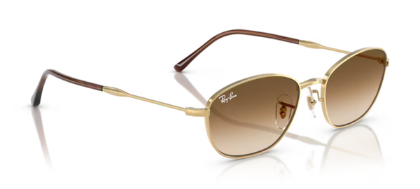 La monture en métal coloris doré (001) apporte une finition haut de gamme et un style iconique signé Ray-Ban. Les verres bruns dégradés (51) assurent un excellent confort visuel en réduisant l’éblouissement tout en garantissant une protection UV400 complète (100 % UVA/UVB).